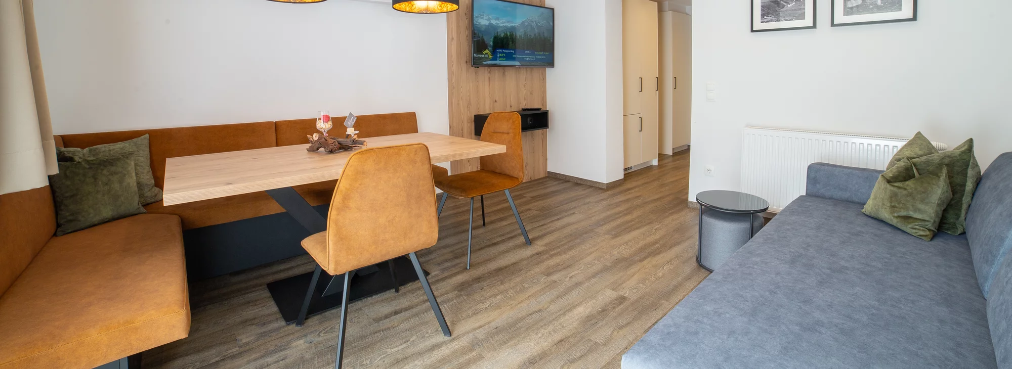 Willkommen in unserem Appartement Gerzkopf, das mit viel Liebe zum Detail gestaltet wurde und ideal für Familien oder kleine Gruppen ist. Hier erwartet Sie ein harmonisches Zusammenspiel aus modernem Wohnkomfort, warmen Farben und großzügigem Raumgefühl – perfekt, um gemeinsam zur Ruhe zu kommen und den Urlaub in vollen Zügen zu genießen.